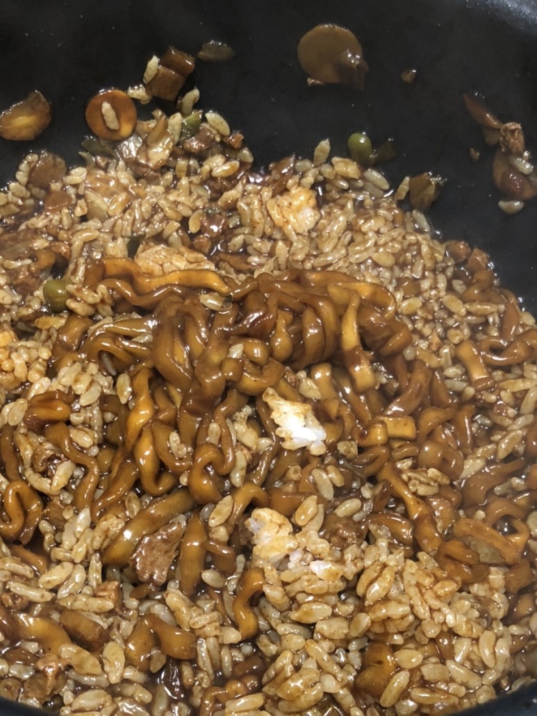 매콤한 짜장 소스에 밥을 안비벼 먹으면