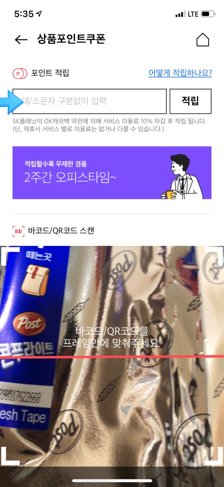 그것을 입력하면 100점을 적립 받을 수 있었어요