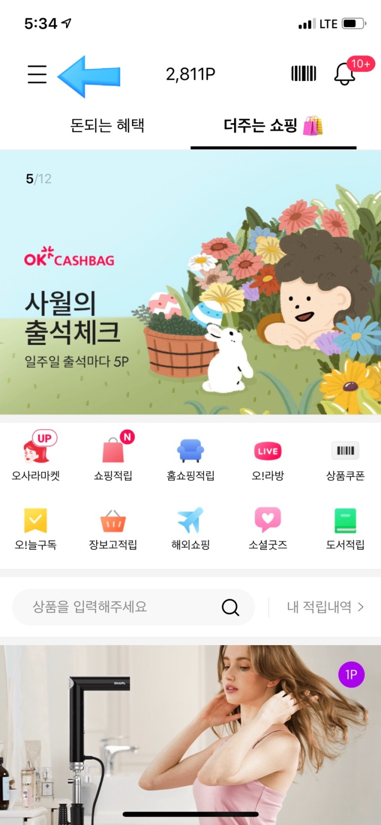 먼저 OK 캐쉬백 어플을 접속하고 화면 상단