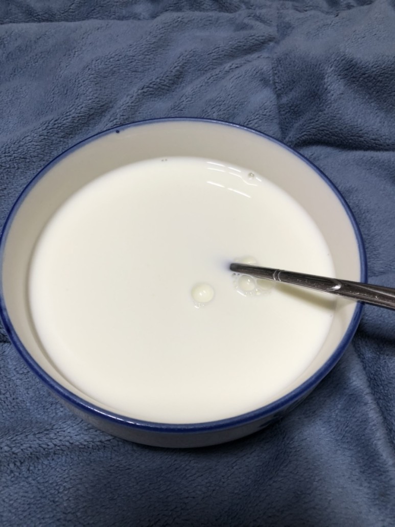 처음에는 반 정도만 우유를 붓고