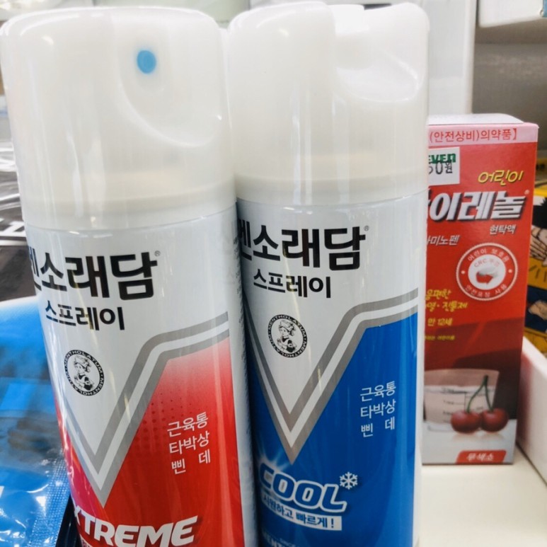 멘소래담 스프레이 파스를 수 차례 계속 뿌려가며