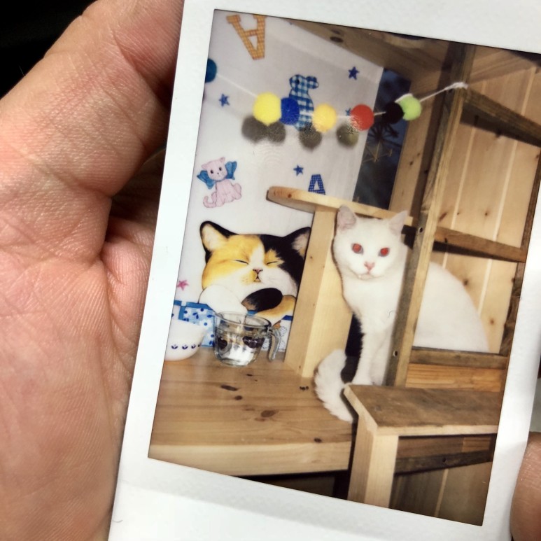 안심하게 되었고 폴라로이드 사진에는 흰고양이