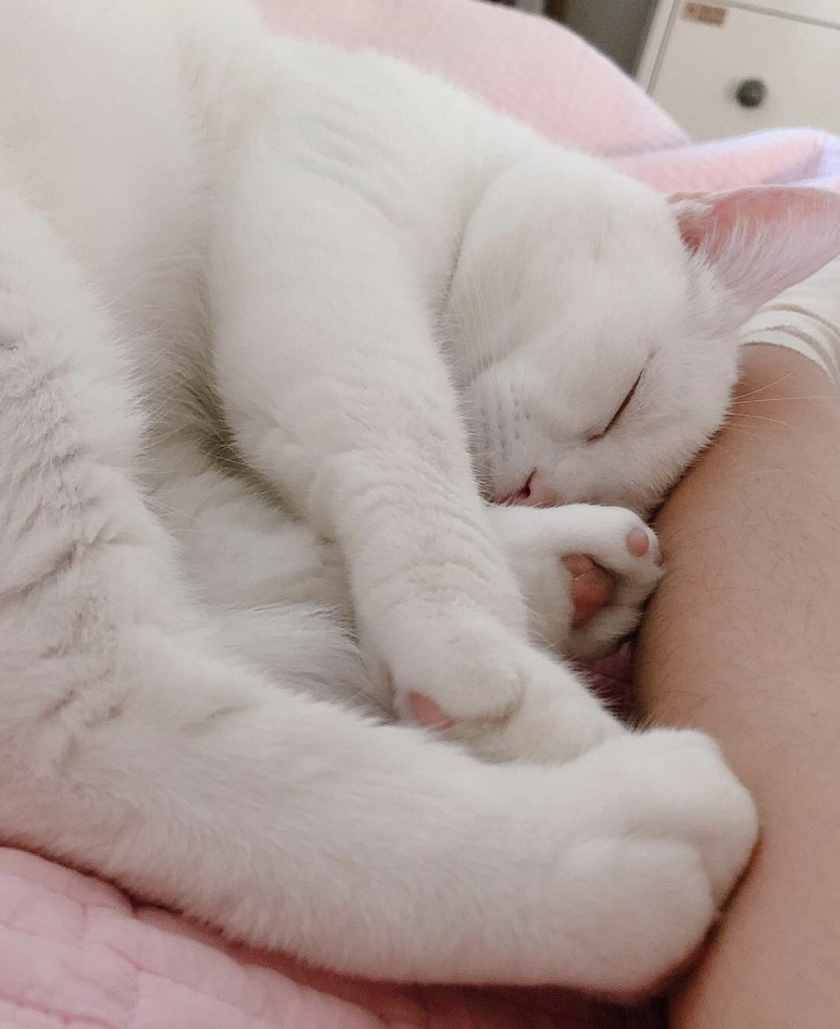 흰고양이가 애기 같았던 느낌이 이 사진에서도