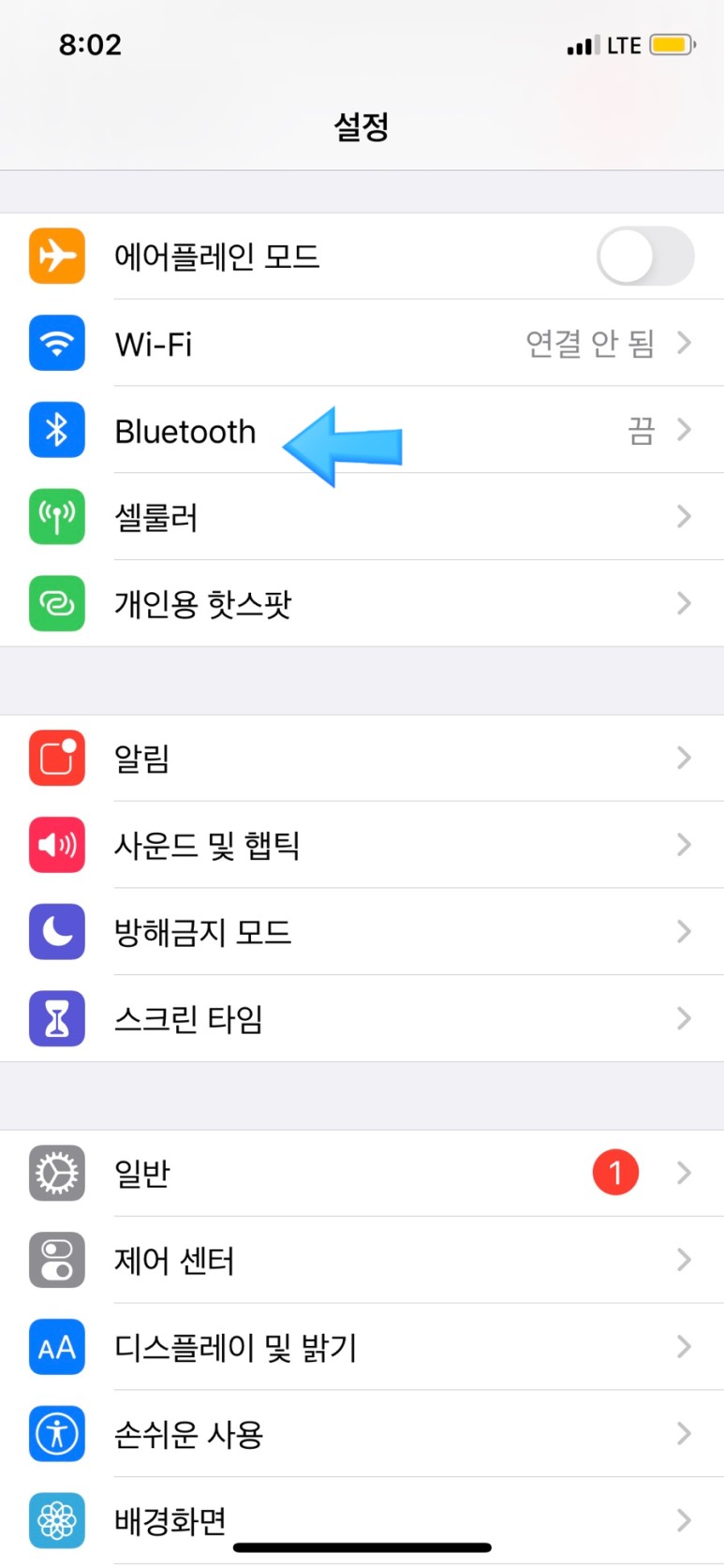 화살표 표시처럼 Bluetooth'가 보일것이다